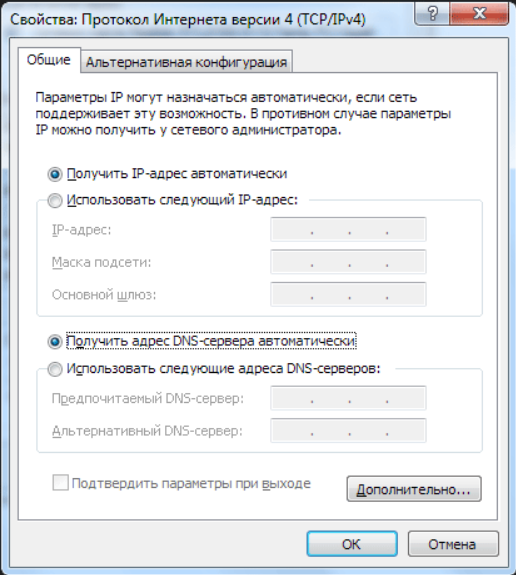 Для смены DNS-сервера откройте диалоговое окно настроек сети согласно инструкции, но вместо адреса наших серверов установите галочку «Получить адрес DNS-сервера автоматически» или впишите настройки предоставленные вам провайдером.