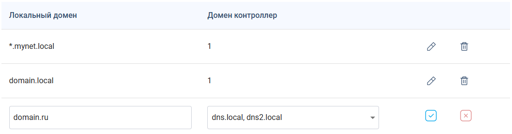 Созданный локальный домен попадёт в список локальных доменов. Можно изменить имя созданного домена или используемые домен контроллеры нажав на кнопку редактирования справа от его имени в списке.