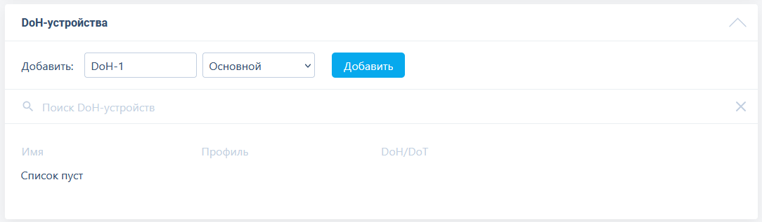 Каждая новая запись в разделе DoH-устройства учитывается в общем количестве использованных устройств на аккаунте. Вы можете создать такое количество устройств, сколько лицензий доступно на вашем аккаунте.