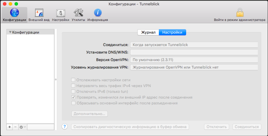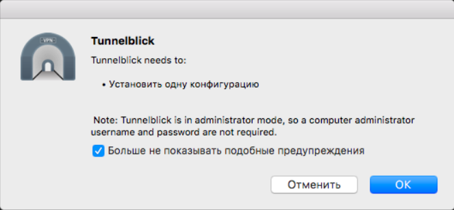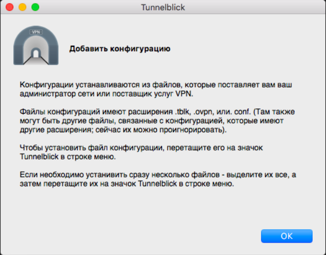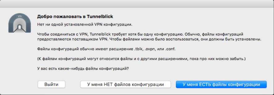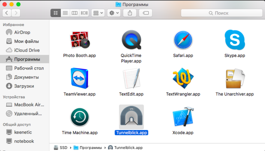 - Запускаем Tunnelblick.app из меню программ любым удобным способом: