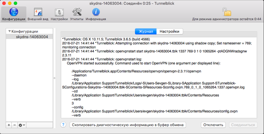 Настройка OpenVPN SkyDNS на устройствах Mac OS X